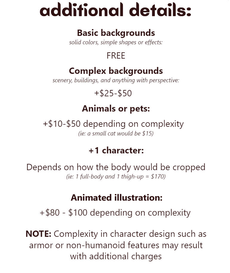 • If the commissioner desires to create profit by printing or creating merch with the art piece, they will need to pay for the commercial rights.